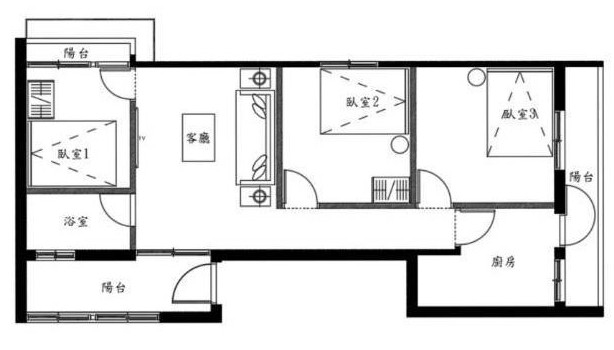 3房/ 2廳/ 1衛/ 3陽台
