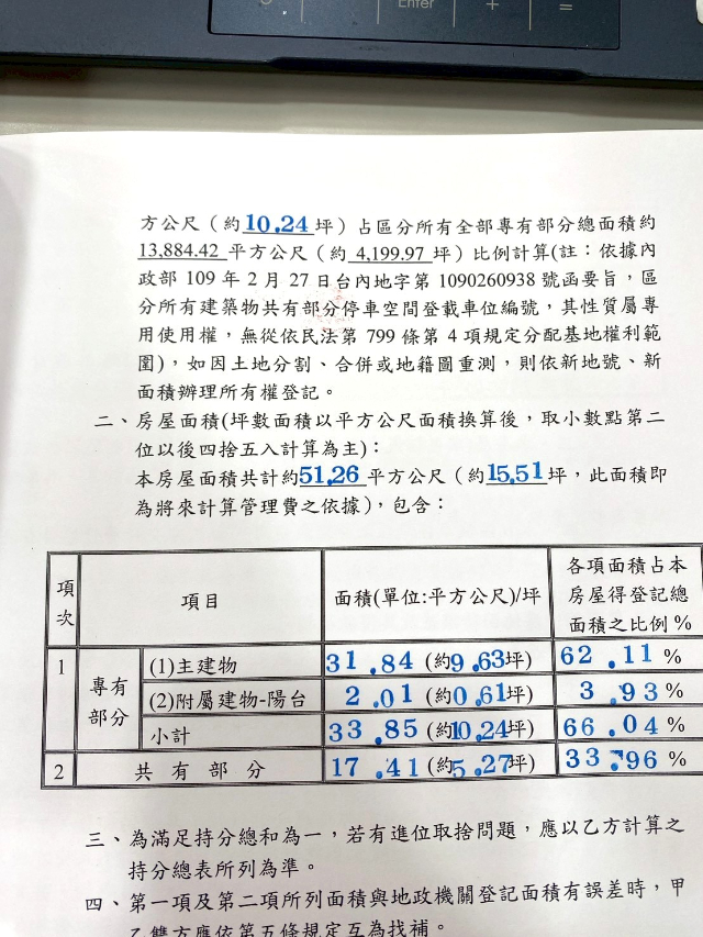 坪數=主建物+附屬建物+公共設施(包含公設車位)+權狀車位。